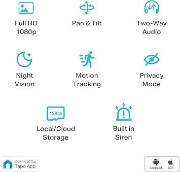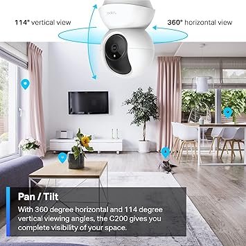 TP-Link Tapo Smart Pan/Tilt Indoor Security Camera, 360° Motion Tracking, 1080p Full HD WiFi Camera for Pet/Baby, Night Vision, 2-Way Audio, 128 GB Local Storage, Works w/Alexa & Google (Tapo C200)